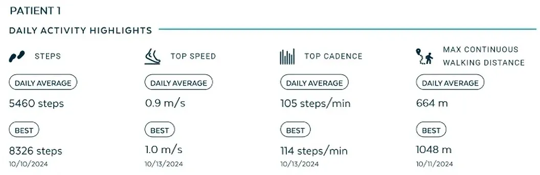 Initial data from the MASU units in Gaza highlight the power of real-world evidence to inform, adjust, and personalize patient care, allowing clinicians to base decisions on objective data, such as step count, cadence, activity intensity, and more.